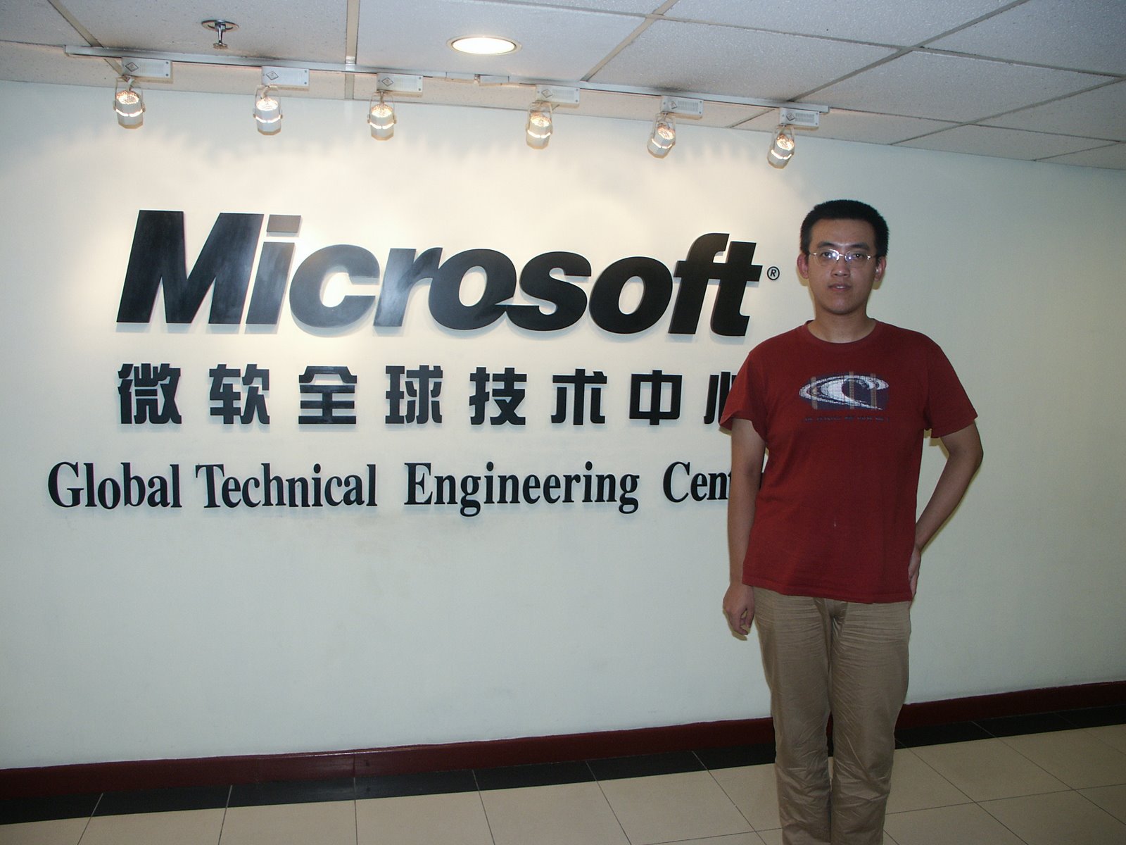 大四更传奇了,微软当时在中国就一个技术部门,叫全球技术中心,在上海。我一个只学了一年计算机科班的毛头小子居然去投简历应聘实习生,经过微软几轮车轮战面试,居然成功了。在微软呆了8个月。这8个月不但技术突飞猛进,而且让我见识了一个500强的大公司是如何运作的。这是我当年在微软实习的照片,时间是2003年9月。